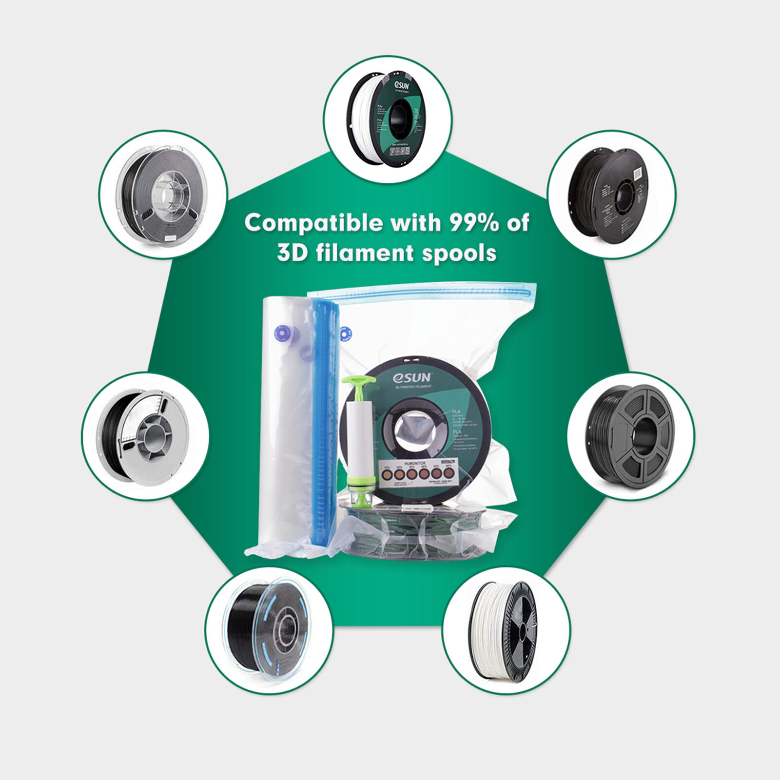 Das eSUN eVacuum Kit wurde speziell für die versiegelte Vakuumlagerung von 3D-Drucker-Filamenten entwickelt.