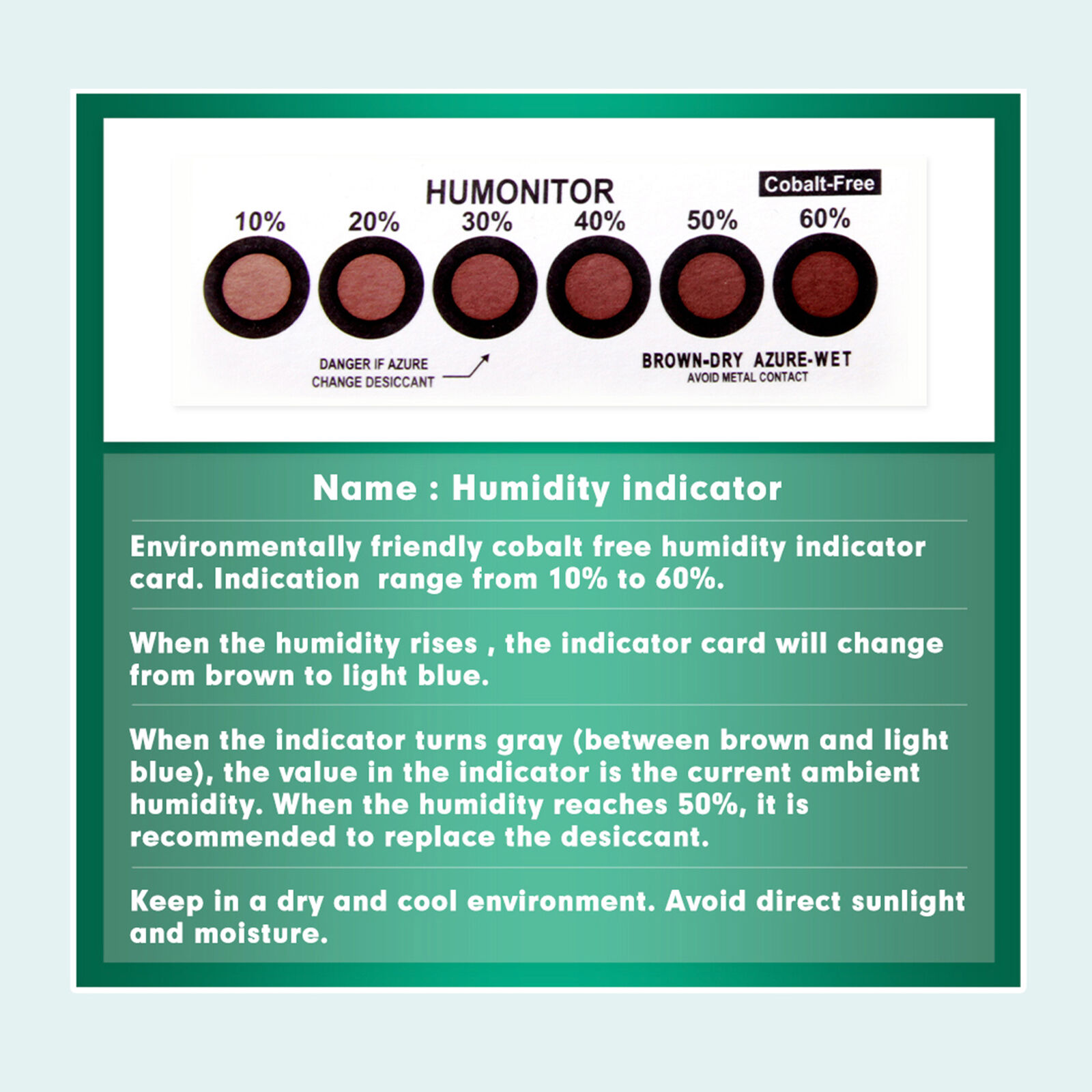 Trockenmittel + Feuchtigkeitsüberwachung durch Farbindikator (Farbänderung)