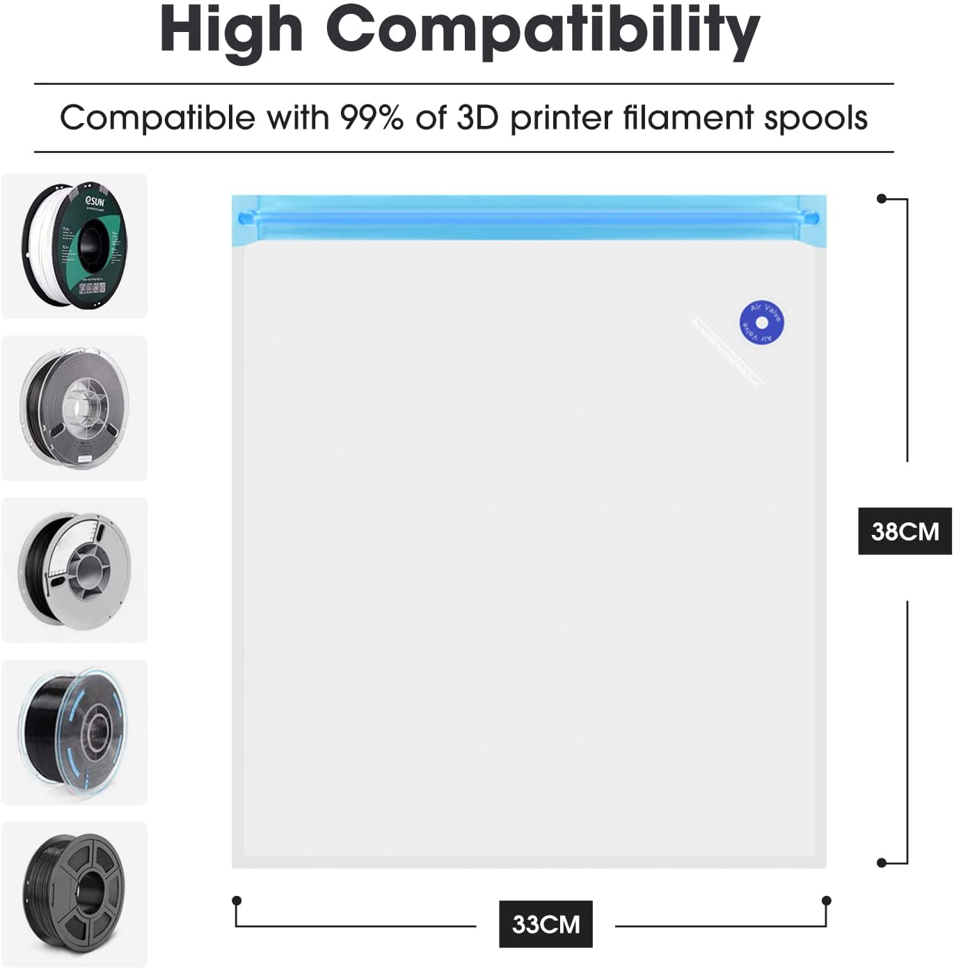 - Staubdicht und feuchtigkeitsfest: Doppelter Verschluss und einseitige Prägebehandlung, Hochleistungsventil, gute Dichtleistung, leicht abzupumpen. Mikroporöser Vakuum-Aufbewahrungsbeutel ermöglicht maximale Luftentfernung, schützt Ihre Filamente vor Feuchtigkeit und Schmutz.