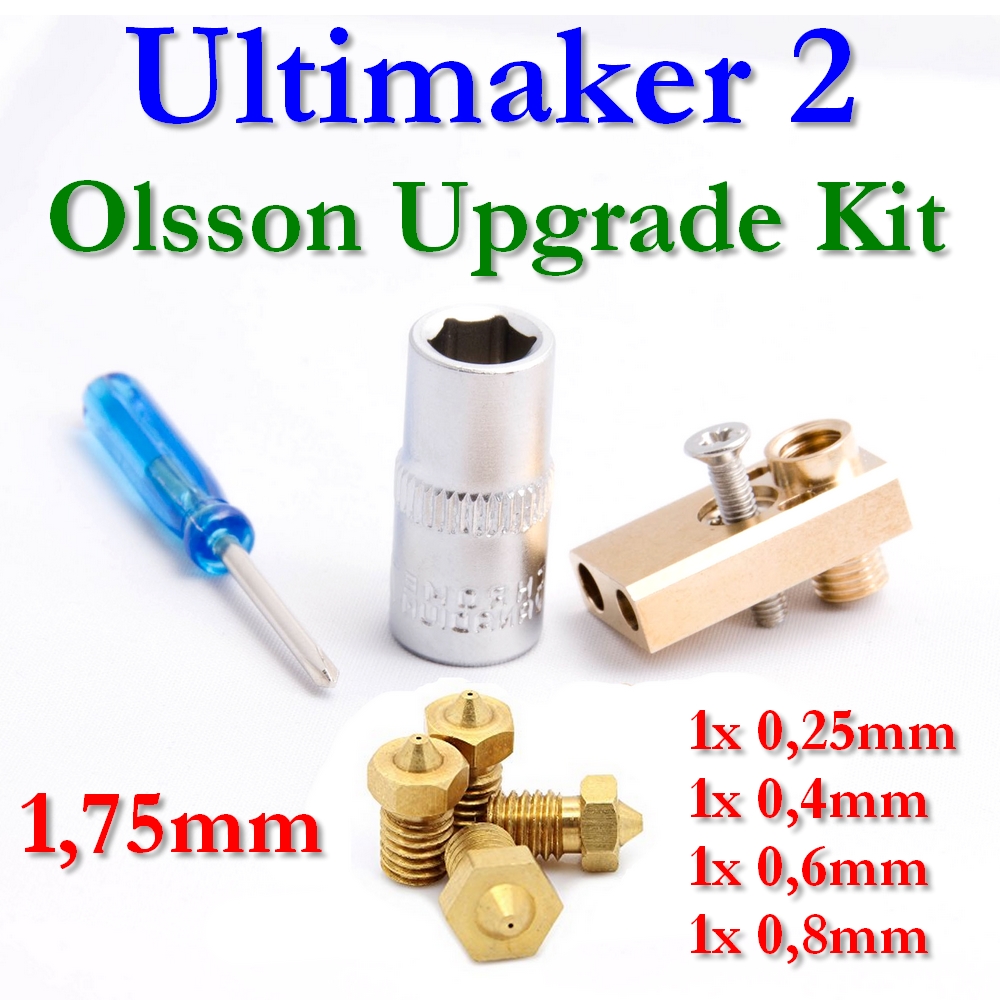 Olsson Block Kit, 4 nozzles, M7 Nut & Screwdr. 1.75mm for UM2